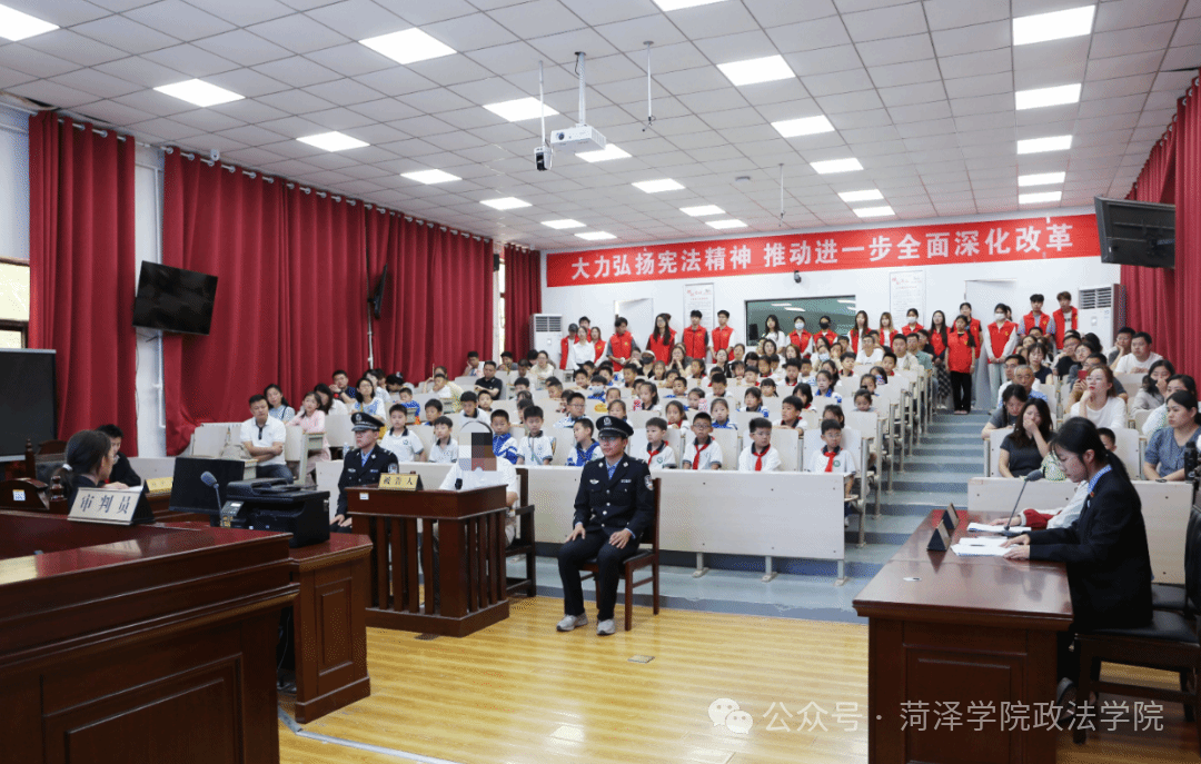 为推进“百万大学生进社区”活动走深走实,创新校地共建新形式,5月18日、5月24日,由校团委主办,QY千亿球友会团委承办的“梦想家法律大课堂”在2号楼206室举行。本次活动分批邀请菏泽市实验小学、吴店镇初级中学200余名学生及家长,走进QY千亿球友会模拟法庭参观学习。