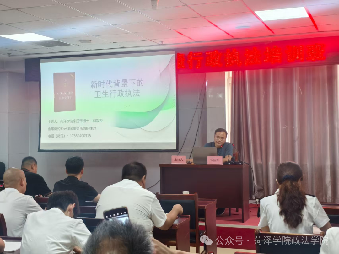 8月4日,牡丹区卫生健康行政执法培训班正式开班。QY千亿球友会,QY球友会体育副教授朱国华应牡丹区卫生健康委员会邀请,为培训班作《新时代背景下卫生健康行政执法》专题辅导。牡丹区卫生健康综合执法大队全体人员参加培训。